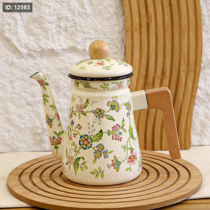 بكرج حليب 1.2لتر زينكو بيج مرسم ورد اخضر يد خشب EL135/13 =ك6