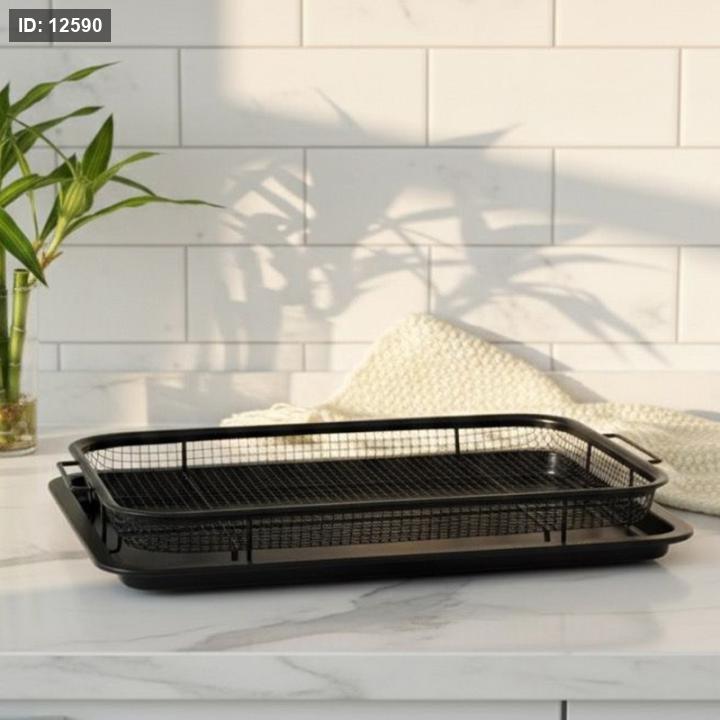 مصفاه بطاطا مستطيل 26*36سم +صينية شبك حديد اسود EL119/1 =ك6