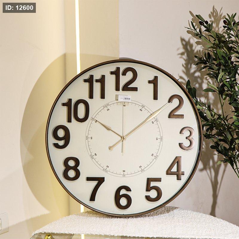 ساعة حائط مدور 60سم ارقام خشب اطار بلاستك بني EL126/1 =ك7