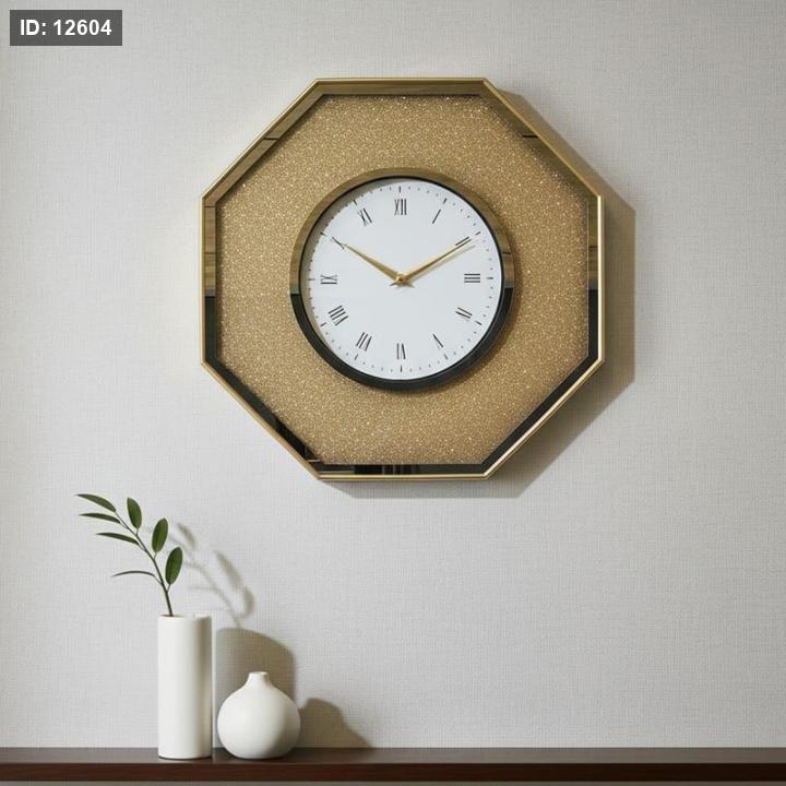 ساعة حائط ثماني 48سم اطار رش رمل ذهبي EL126/6 =ك7
