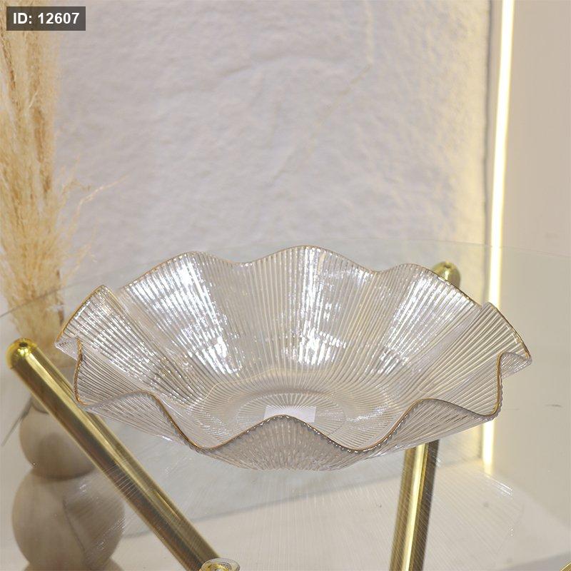 جاط فواكة مدور 35سم زجاج محزز اطار معرج ذهبي EL54/43 =ك7