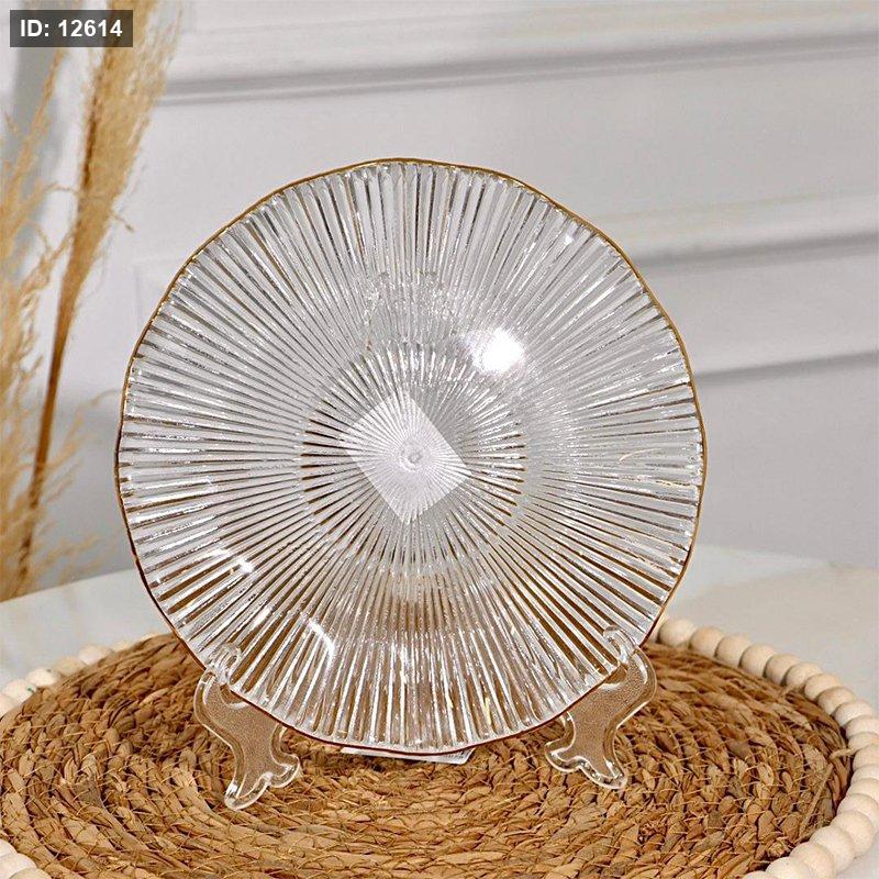 صحن فواكة 20سم زجاج محزز (ت.ك6) اطار معرج حيف ذهبي EL54/51 =ك7