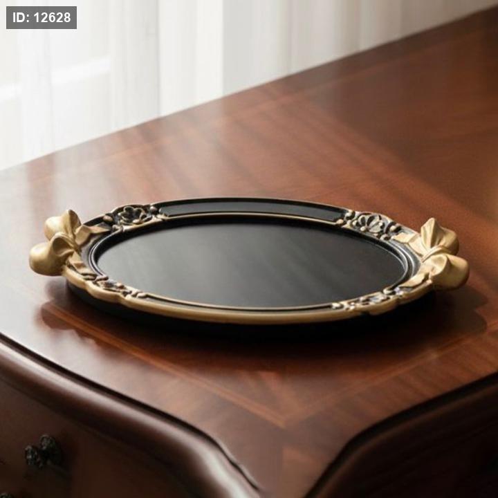 صينية بيضاوي 40سم بلاستك اسود بيدين ببيونة L47/9 + 24/13 =ك7
