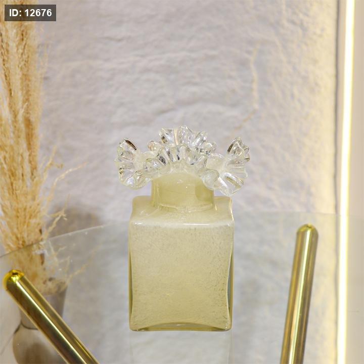 فازة 20سم مربع زجاج اصفر عنق وردة L8/23=ك7