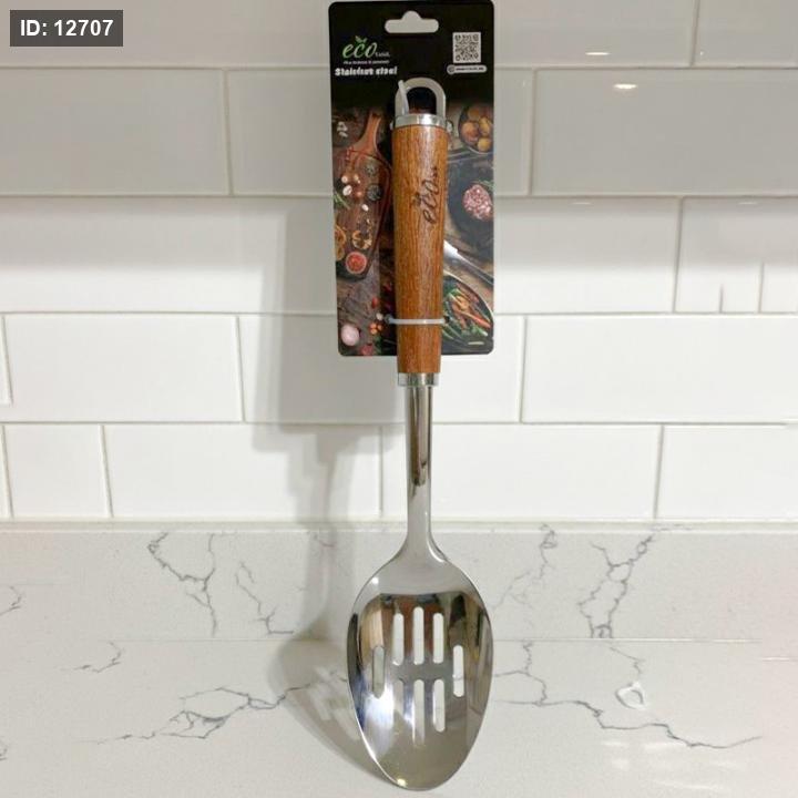 معلقة سفرة مخزقة 30سم ستانلس ستيل ECO يد خشب EL51/7 =ك8