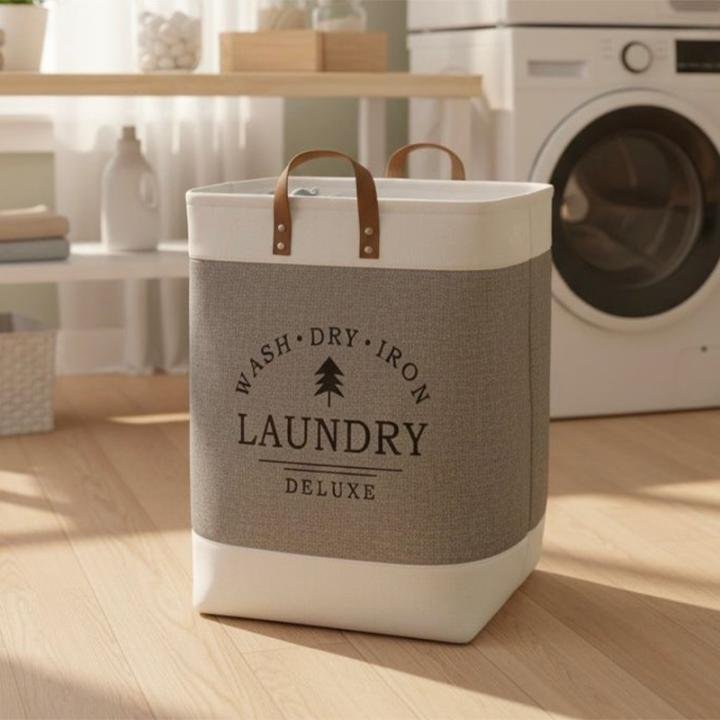 سلة شنتة قماش مستطيل طوي بيدين جلد EL70/6 =ك8
