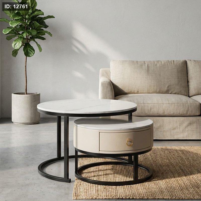 طقم طاولة/2 وجة جرانيت ابيض ارجل حديد اسود EL57/1 =ك8