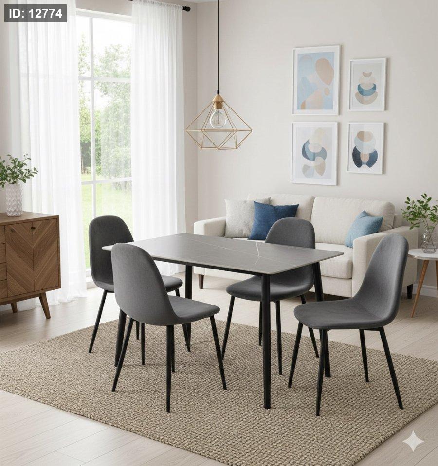 طقم طاولة مستطيل وجه جرانيت ابيض+ 4 كراسي سكني +