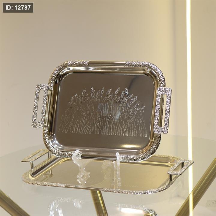 طقم صواني مستطيل/2 ستانلس فضي وجة مراه سبلة EL116/2 =ك8