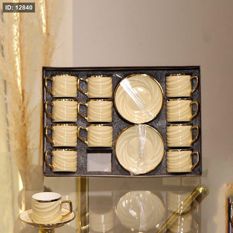 طقم فناجين قهوة 12/12 بورسلان كابتشينو موشح حيف ذهبي GY2454 ++