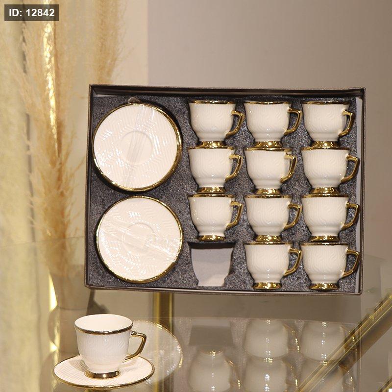 طقم فناجين قهوة 12/12 بورسلان ابيض مجدول قاعدة وحيف ذهبي GY2425 ++