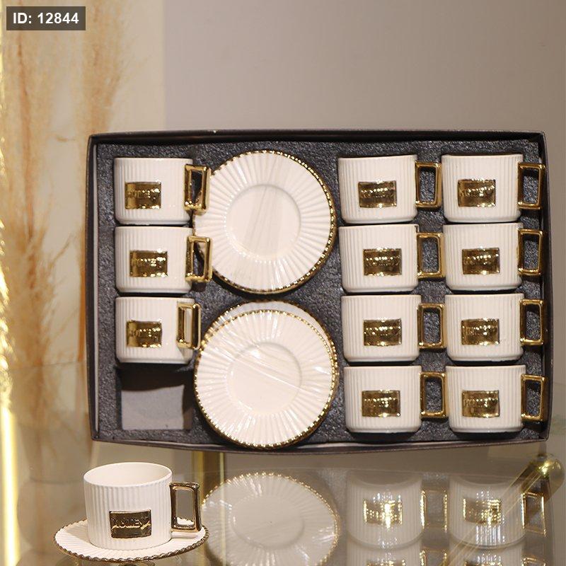 طقم فناجين قهوة 12/12 بورسلان ابيض مكتب HOME محزز GY2406 ++