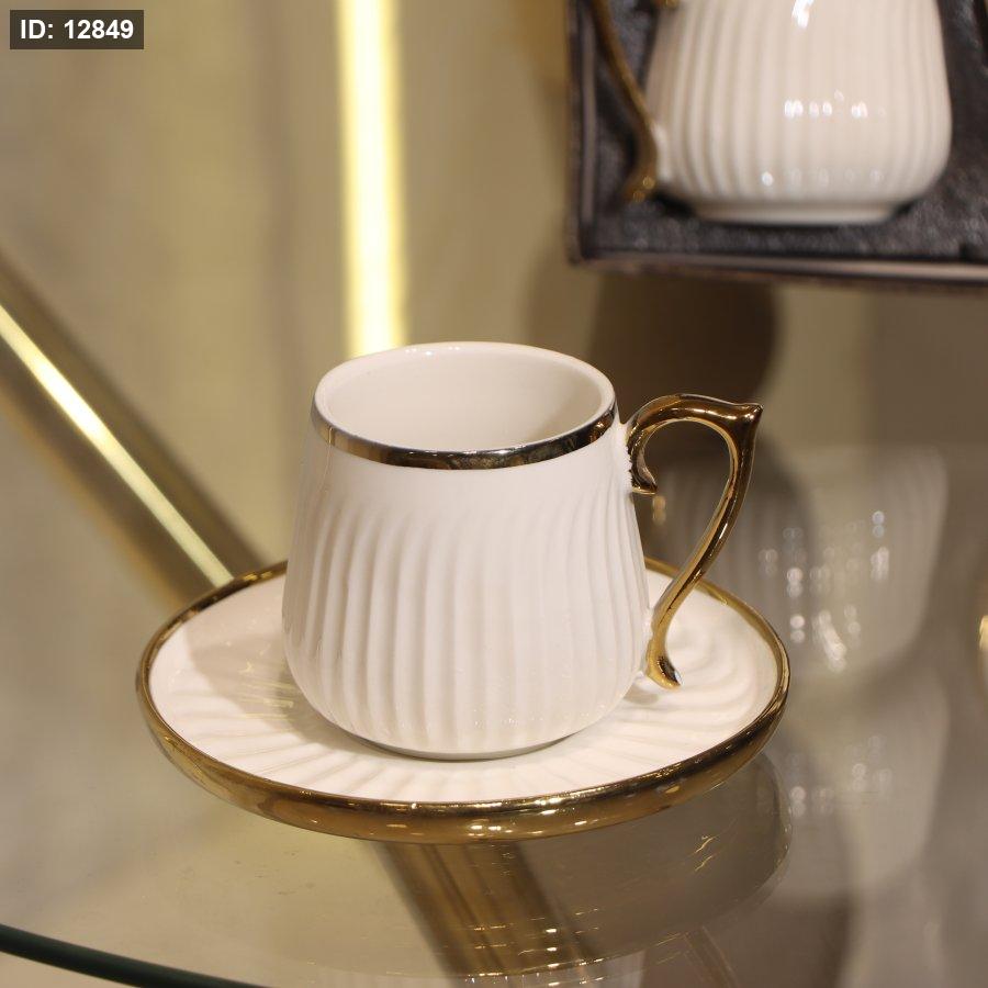 طقم فناجين نسكافيه 6/6 بورسلان ابيض محزز حيف ويد ذهبي GY2420 ++