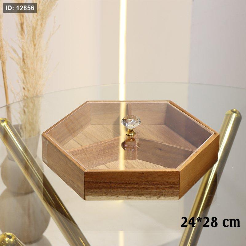 مضيفة مكسرات شكل سداسي مقطع 3عين 28*24سم خشب بامبو غامق غطا اكرلك EL72/6 =ط55