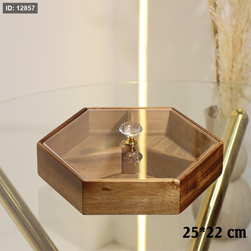 مضيفة مكسرات شكل سداسي مقطع 3عين 22*25سم خشب بامبو غامق غطا اكرلك EL72/7 =ط55