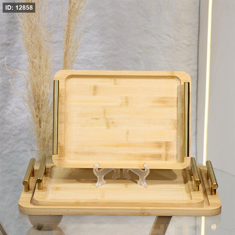 طقم صواني /3 مستطيل خشب بامبو يدين مقبض ذهبي EL72/8 =ط55