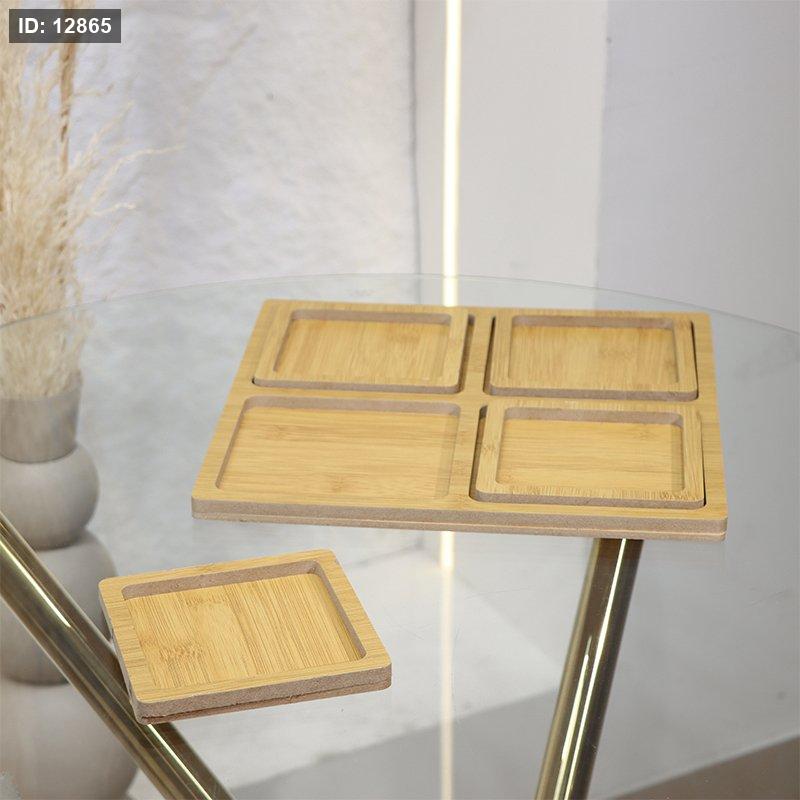 طقم/5 صينية +4صحون مكسرات مربع خشب بامبو EL72/15 =ط55