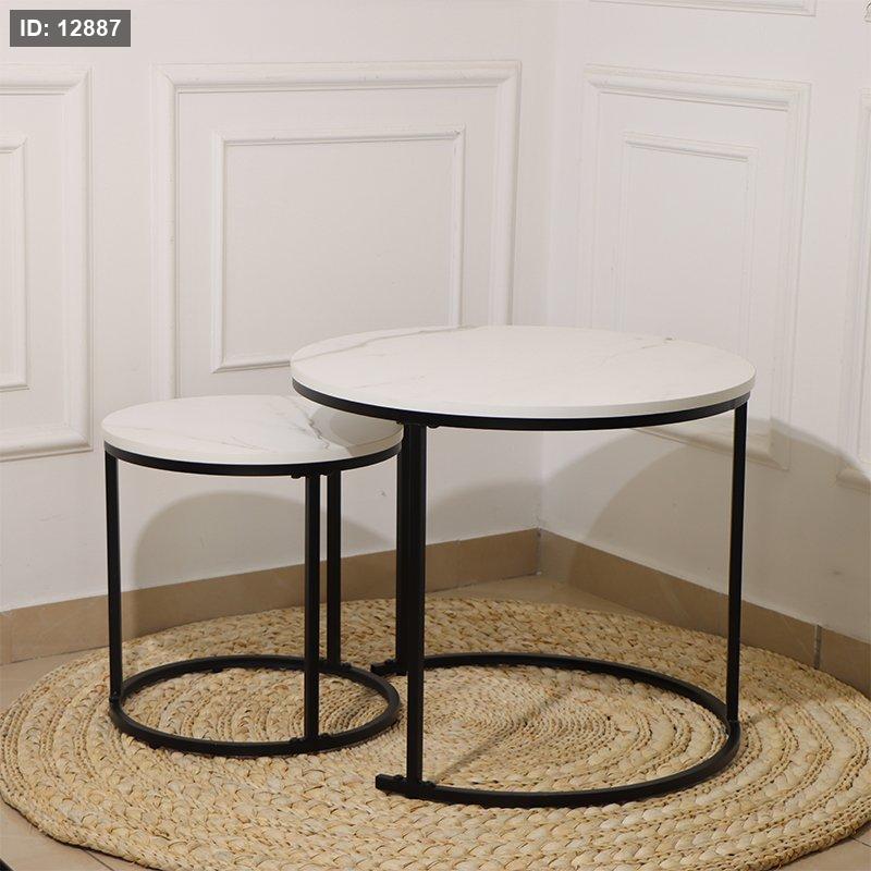 طقم اسكملات/2 مدور خشب ماربل ابيض ارجل حديد اسود EL58/6-A =ط55