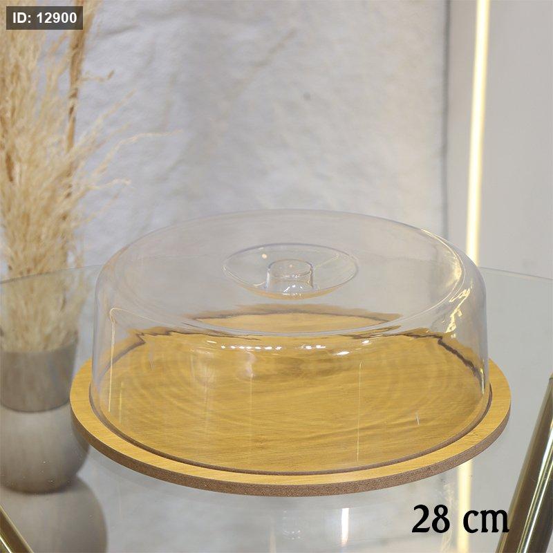 جاط كيك مدور 28سم قاعدة خشب بامبو غطا اكرلك شفاف EL78/10 =ط55