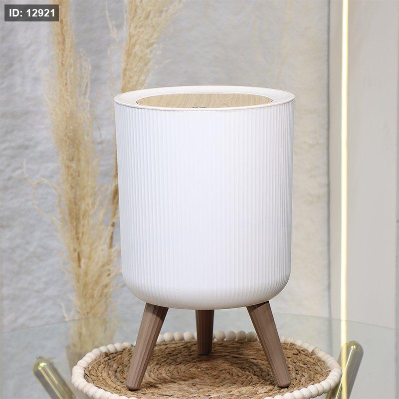سلة مهملات مدور غطا ضغط بلاستك ابيض محزز بقاعدة ارجل EL84/1 =ط55
