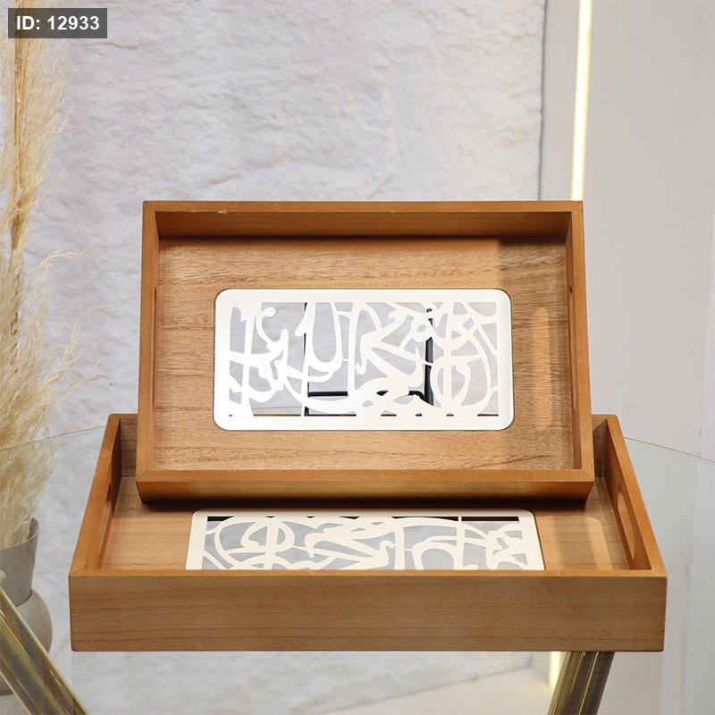طقم صواني /2 مستطيل خشب وجه تنك بيج مخرم EL29/2 =ط55
