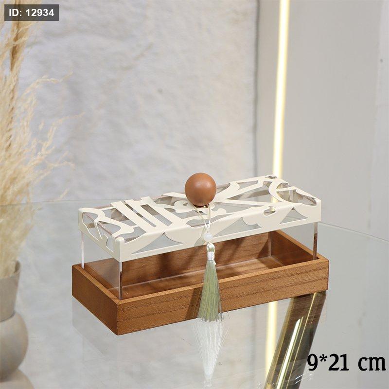 مضيفة مستطيل 21*9سم قاعدة خشب غطا اكرلك مخرم تنك بيج مسكة طابة EL29/3 =ط55