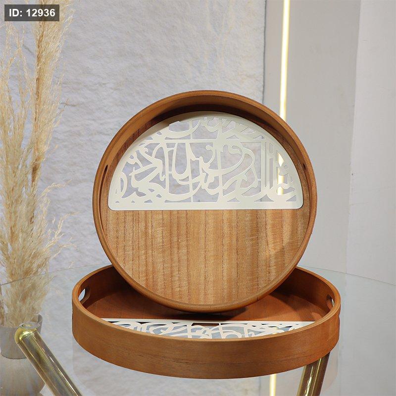 طقم صواني /2 خشب مدور وجه نصف تنك بيج مخرم EL29/5 =ط55