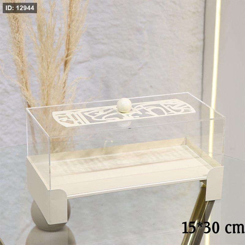 مضيفة مستطيل 30*15سم تنك بيج غطا اكرلك مسكة طابة EL29/13 =ط55