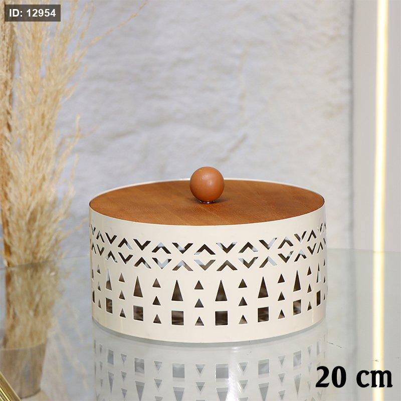 مضيفة مدور 20سم تنك بيج غطا ومسكة طابة خشب EL29/23 =ط55