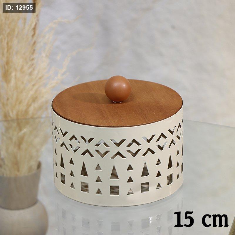 مضيفة مدور 15سم تنك بيج غطا ومسكة طابة خشب EL29/24 =ط55