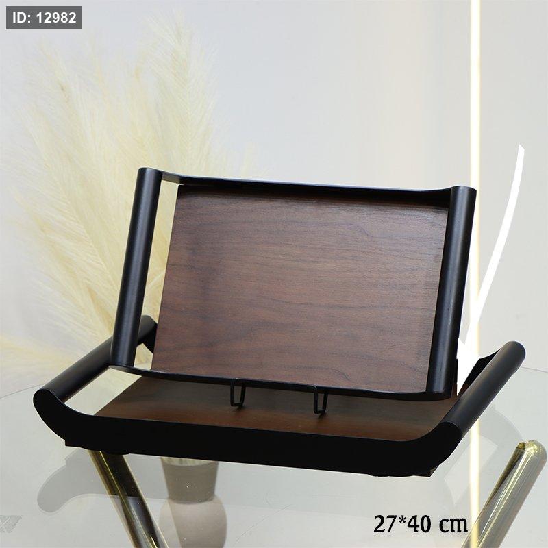 صينية مستطيل 40*27سم وجه خشب بني محروق اطار حديد اسود EL12/2 =ط56
