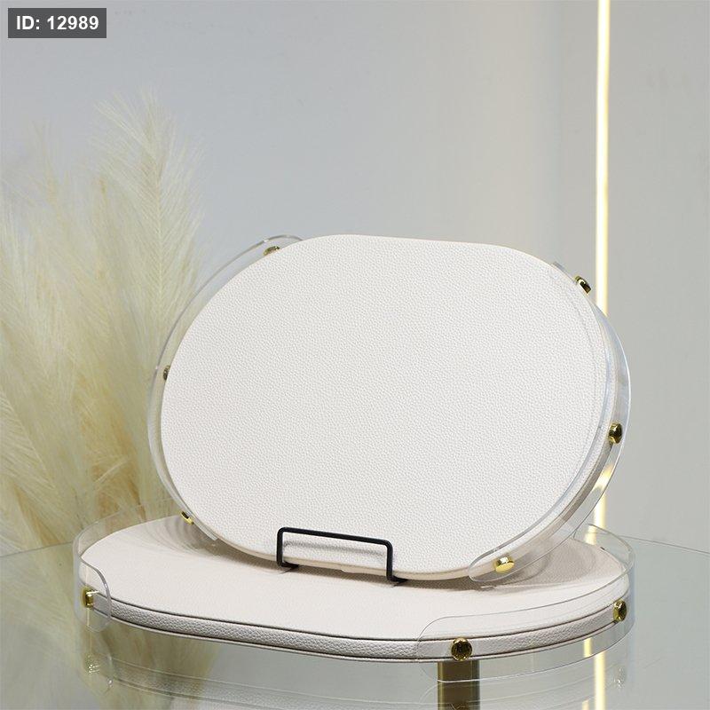 طقم صواني/2 بيضاوي جلد بيج بيدين اكرلك شفاف EL14/3 =ط56