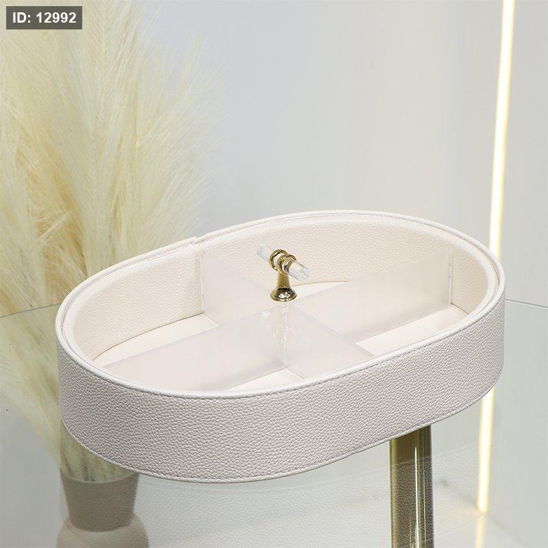 مضيفة جلد بيج شكل بيضاوي مقسمة 4 عين غطا بلاستك شفاف EL14/5 =ط56
