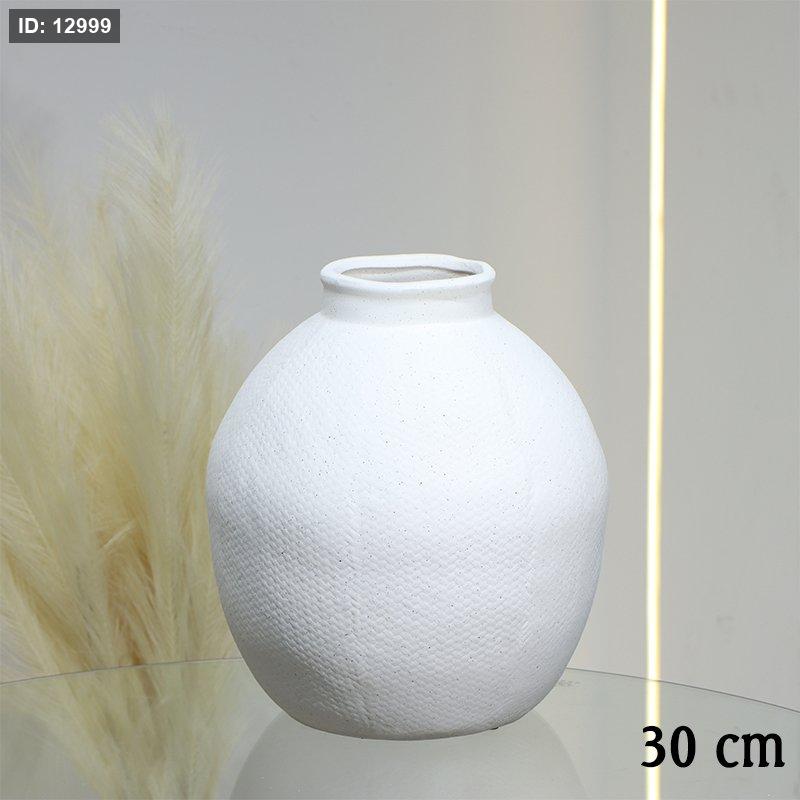 فازة جبص بيج 30سم شكل طابة عنق عريض EL18/12 =ط56