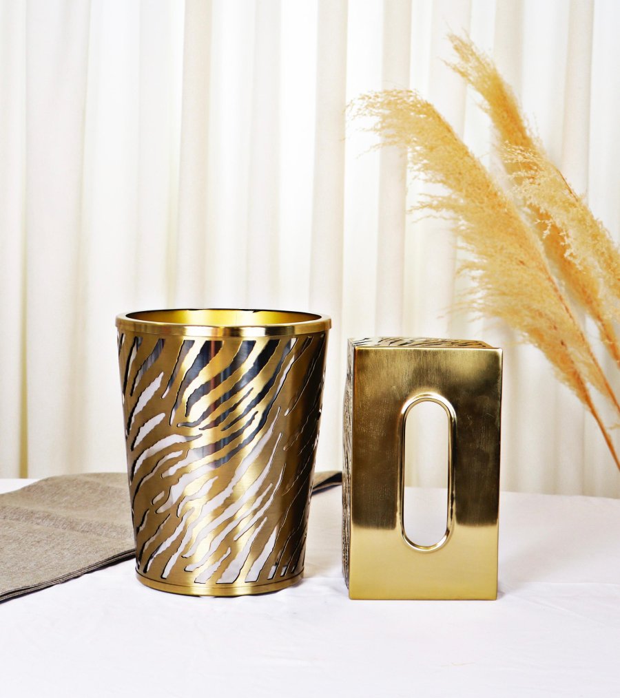 طقم/2 سلة +بكيت محارم تنك برونزي موشح مموج 8229101 =H3