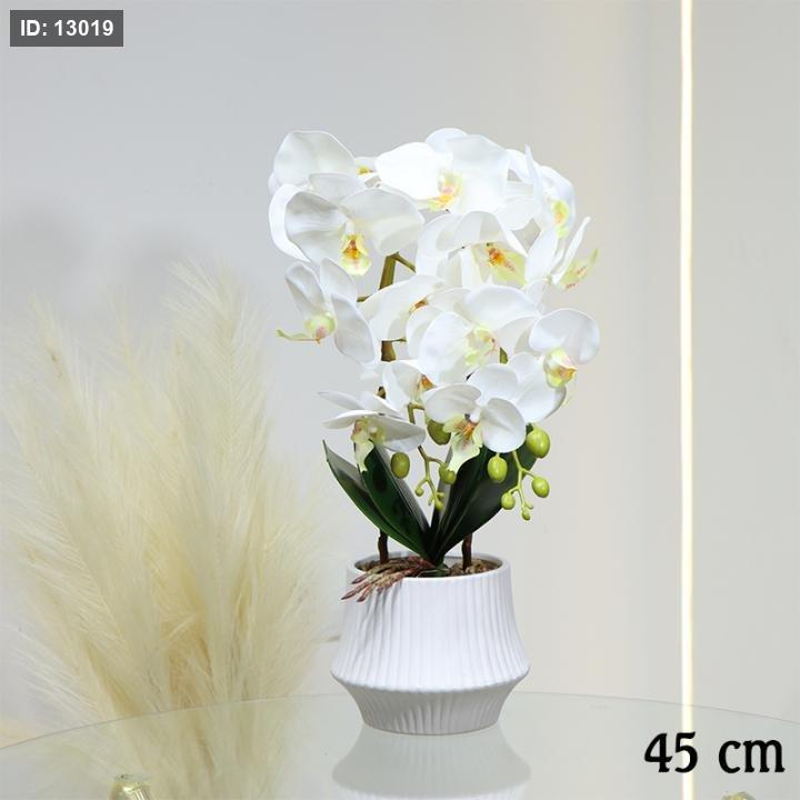 قوار بورسلان بيضاوي محزز ورد ابيض 45سم عروق اخضر EL145/4 =ط56