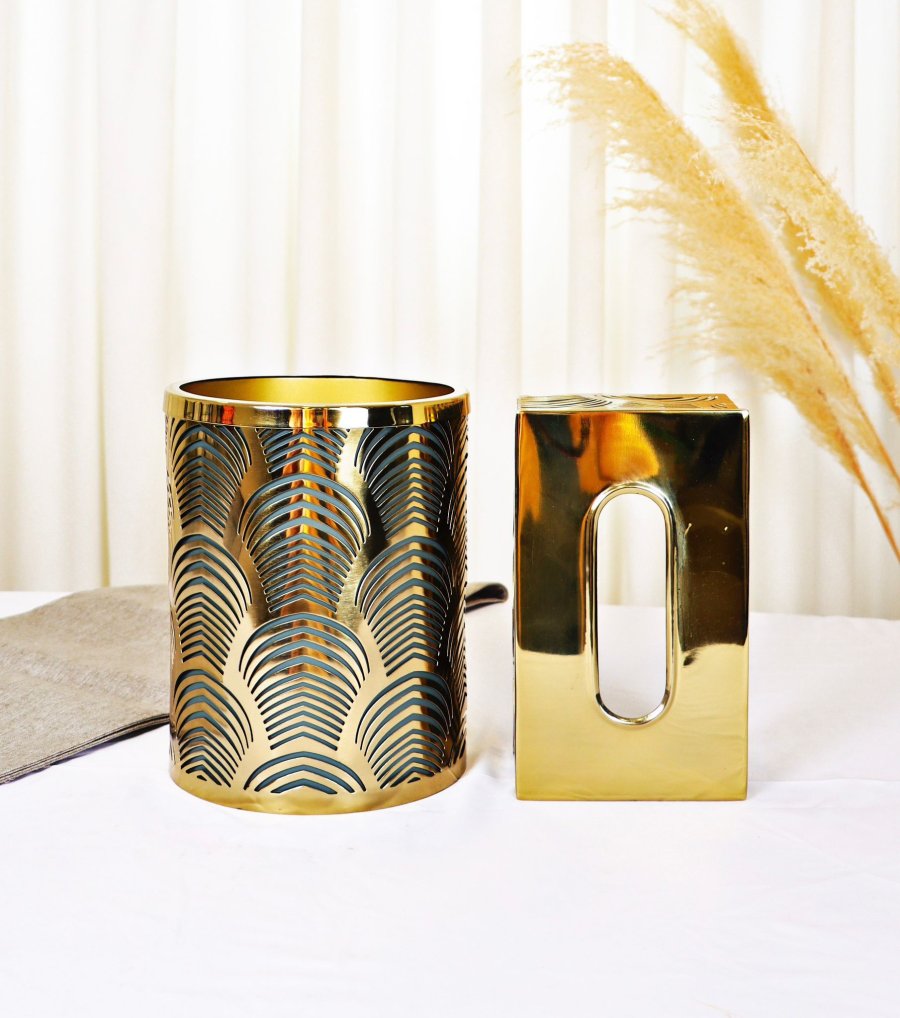 طقم/2 سلة +بكيت محارم تنك برونزي مموج اقواس8229102 =H3
