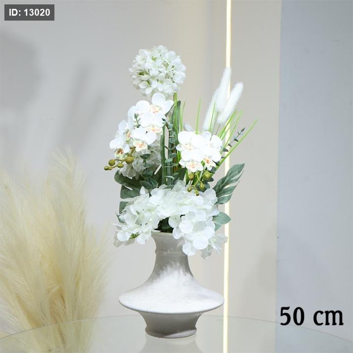 قوار شكل فازة حلقات بورسلان محزز ورد ابيض 50سم عروق اخضر EL145/5 =ط56