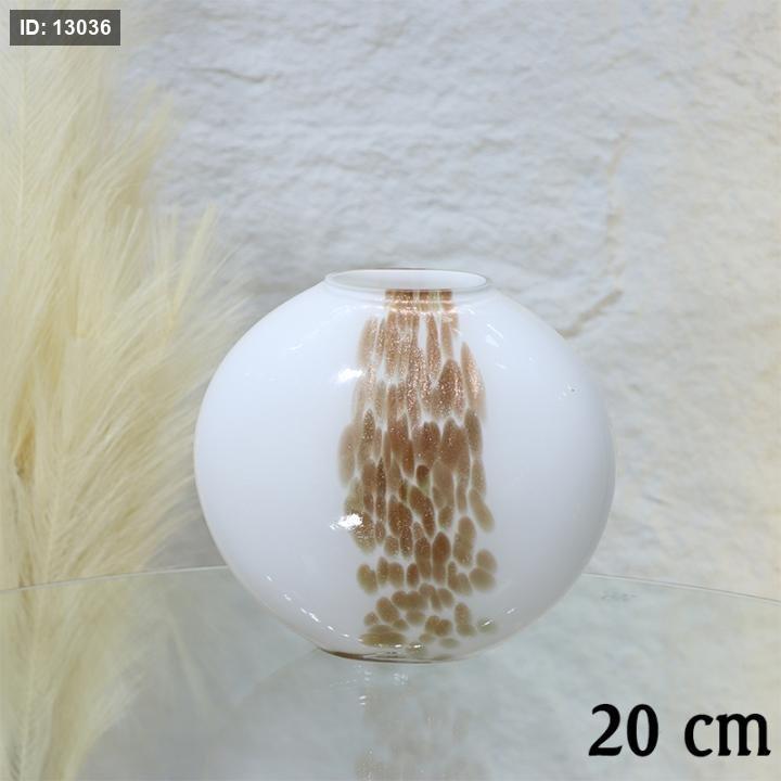 فازة مدور 20سم زجاج لميع ابيض مرسم بني EL12/4 =ط56