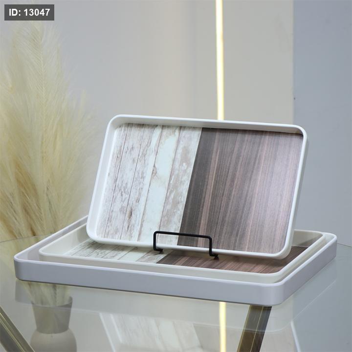 طقم صواني /3 بلاستك مستطيل ابيض وجه خشبي قهوة EL118/8 =ط56