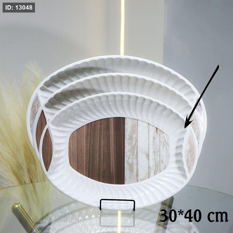 صينية بيضاوي بلاستك 40*30سم وجه خشبي قهوة اطار محزز EL118/9 =ط56