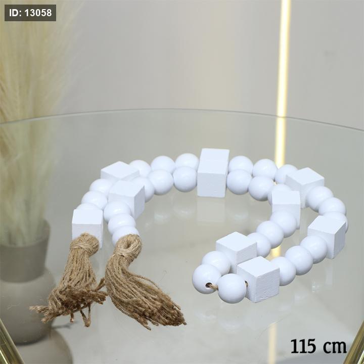 مسبحة ديكور 115سم خشب ابيض مربعات مسكة شراشيب EL36/8 =ط56