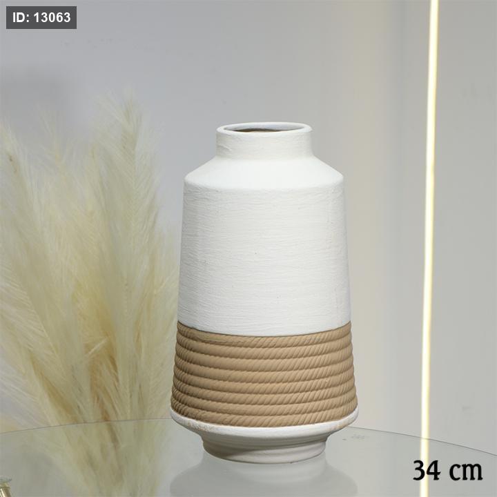 فازة جبص بيج 34سم شكل اسطواني قاعدة مجدول بني EL10/1 =ط56
