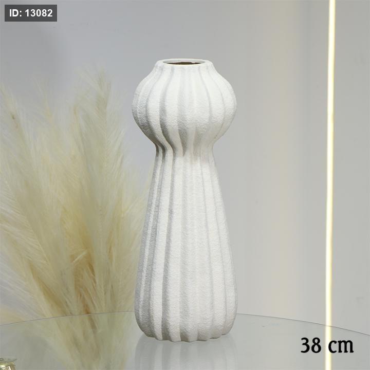 فازة جبص بيج 38سم اسطواني محزز عنق طابة EL10/6 =ط56