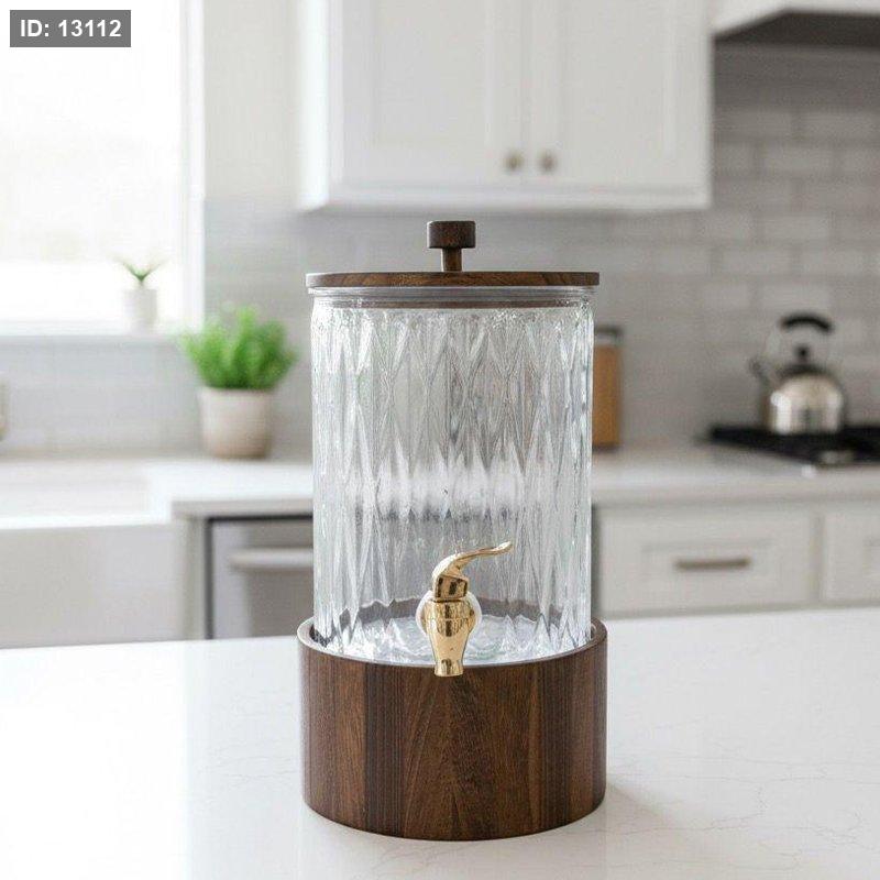 مطربان مدور زجاج حنفية 5لتر قاعدة وغطا خشب معتق ECO++ TD25