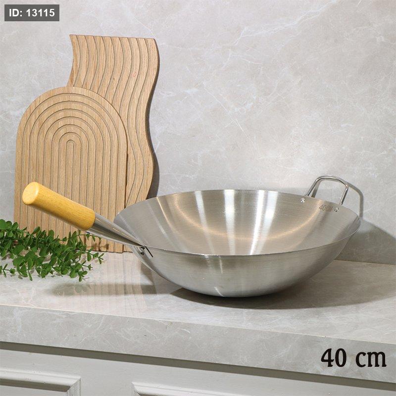 صاجية مدور 40سم ستانلس ستيل بيد خشب يد طويل EL22/13 =ط57