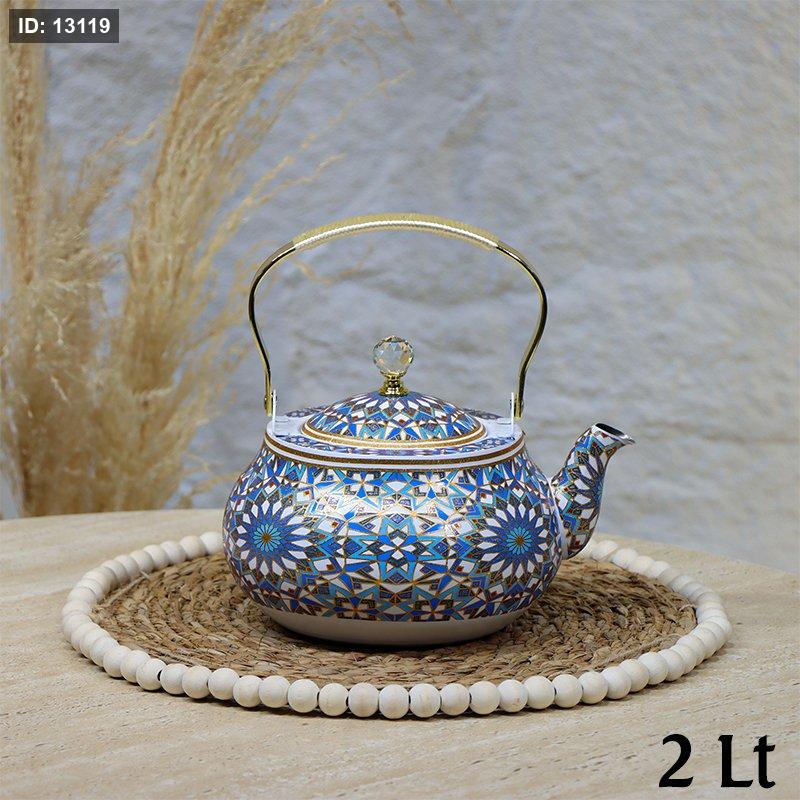 براد شاي 2لتر ستانلس ستيل مزخرف ازرق يد ستانلس ذهبي EL22/17 =ط57