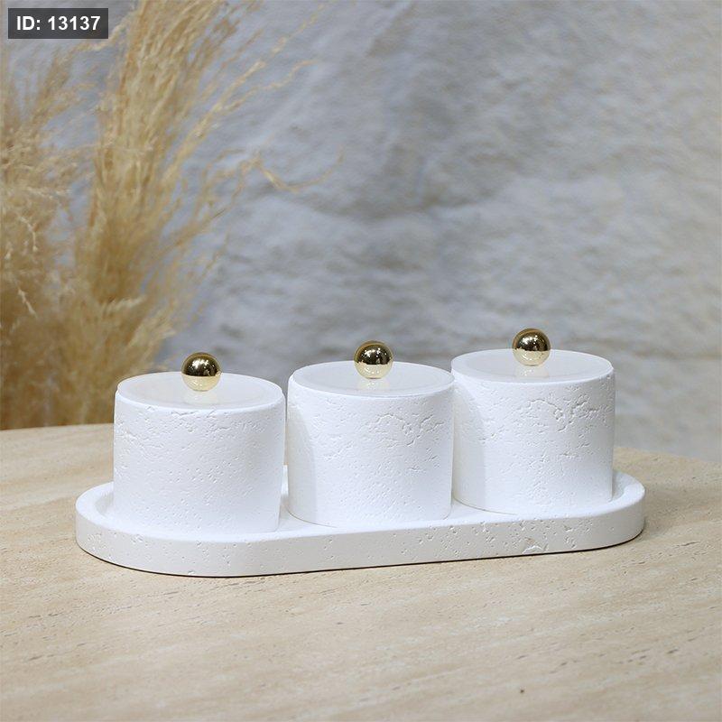 طقم/4 صينية بيضاوي + 3 مضايف مدور جبص ابيض غطا اكرلك شفاف EL45/14 =ط57
