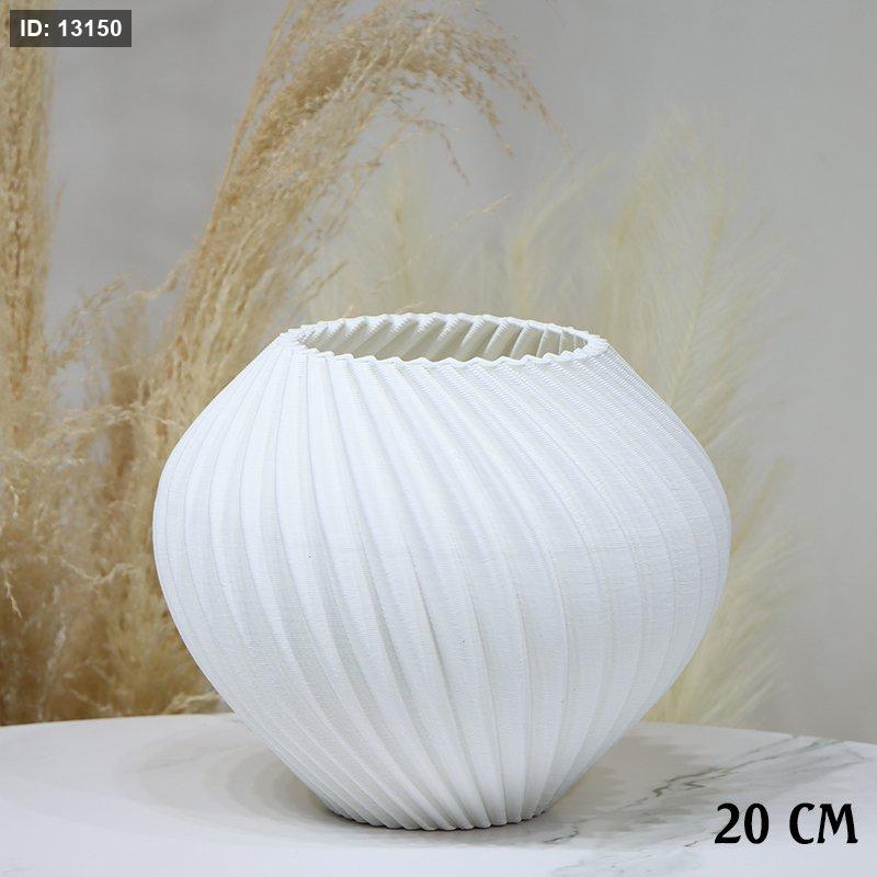 فازة جبص ابيض مدور 20سم شكل محزز EL33/3 =ط57