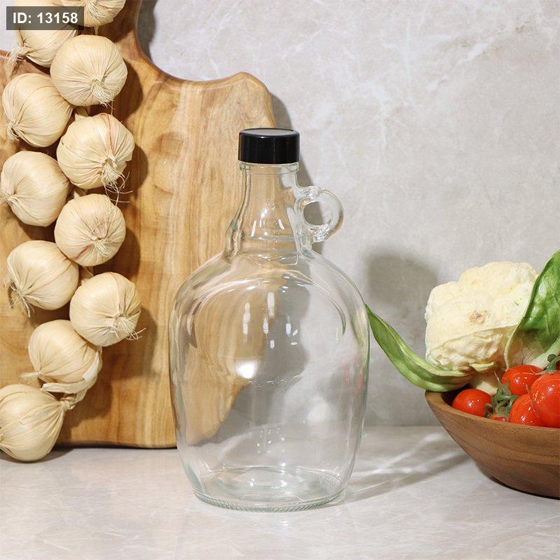 قنينة زيت زجاج نمرة 4 شكل برميل بيد غطا بلاستك لف EL130/5 =ط57